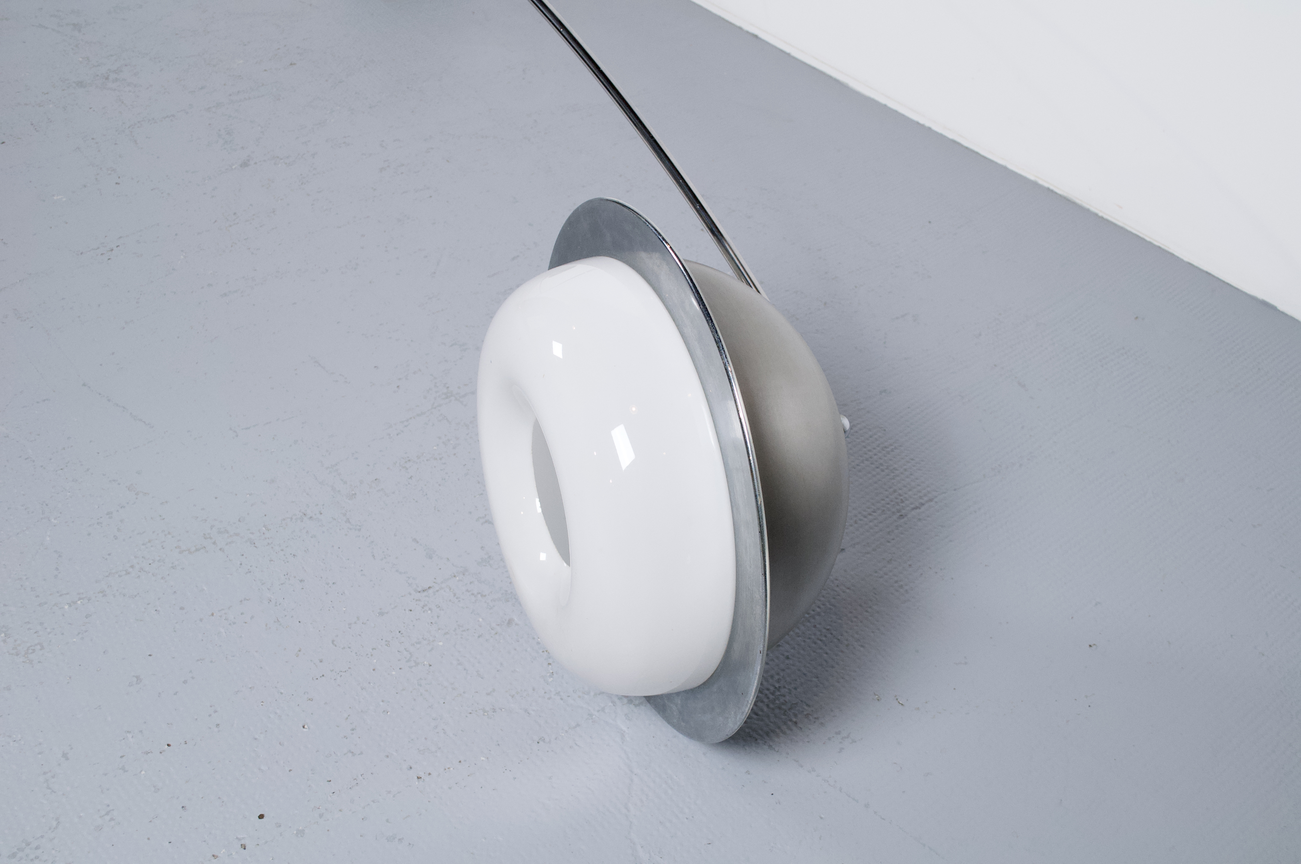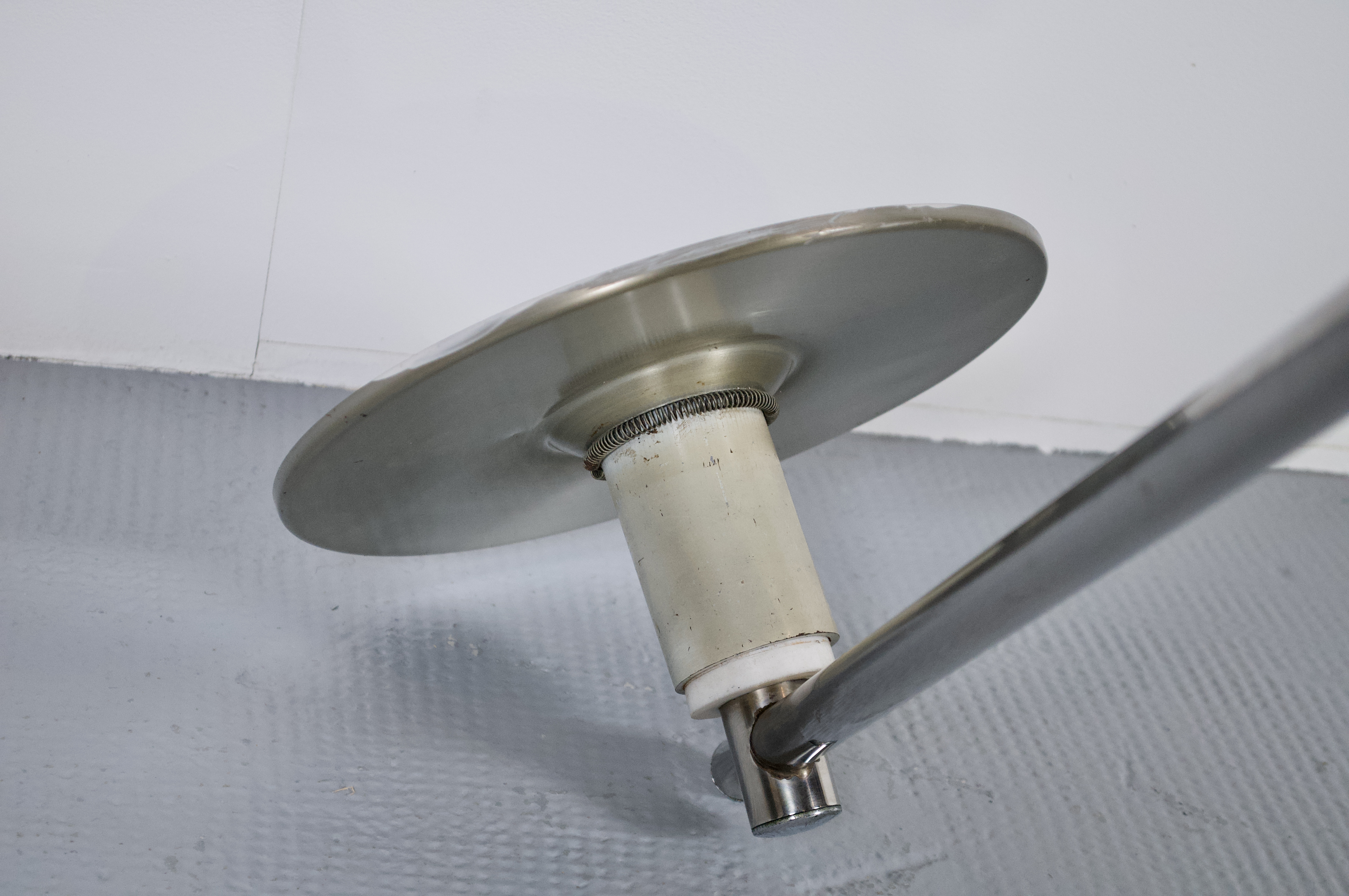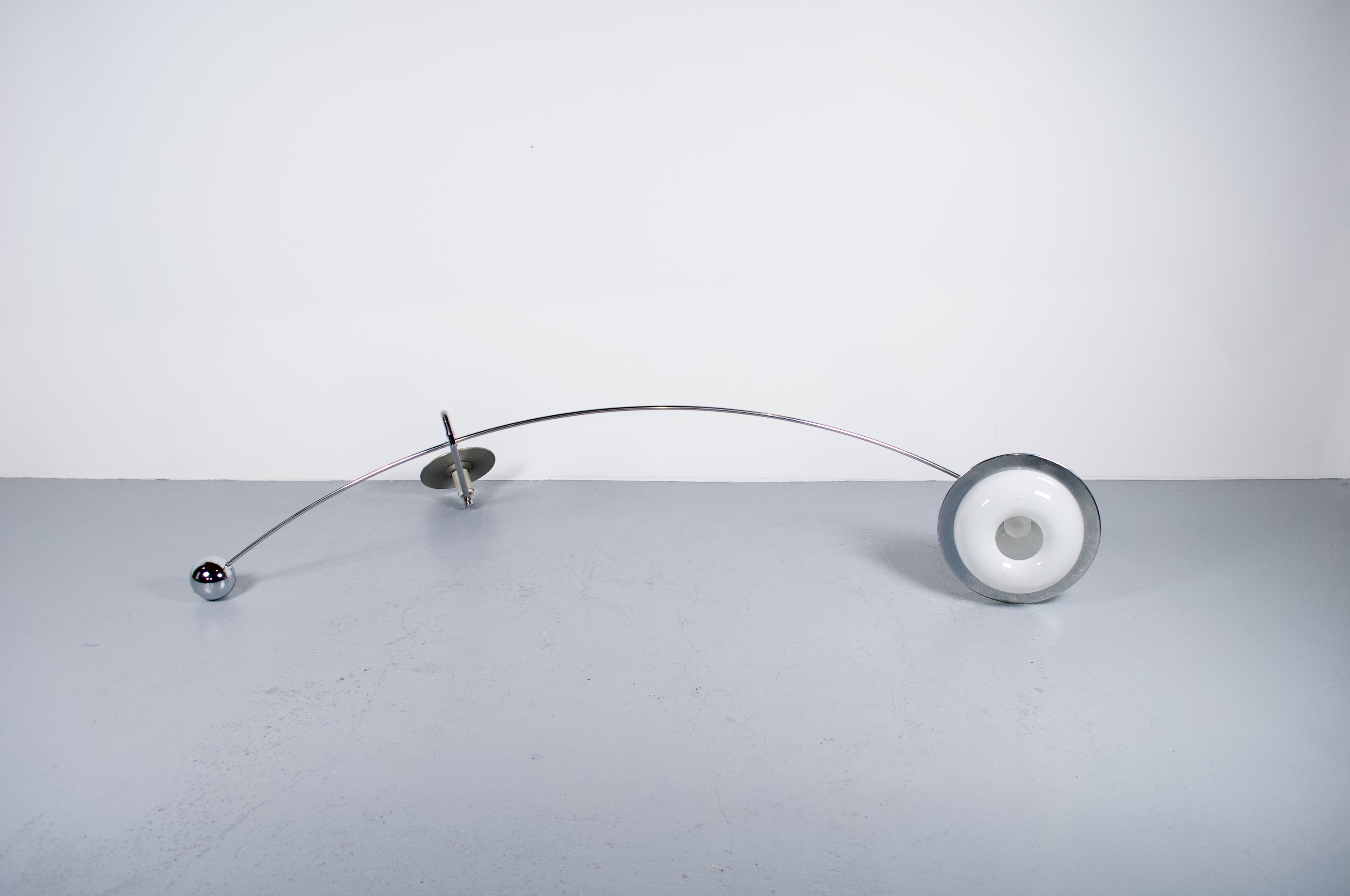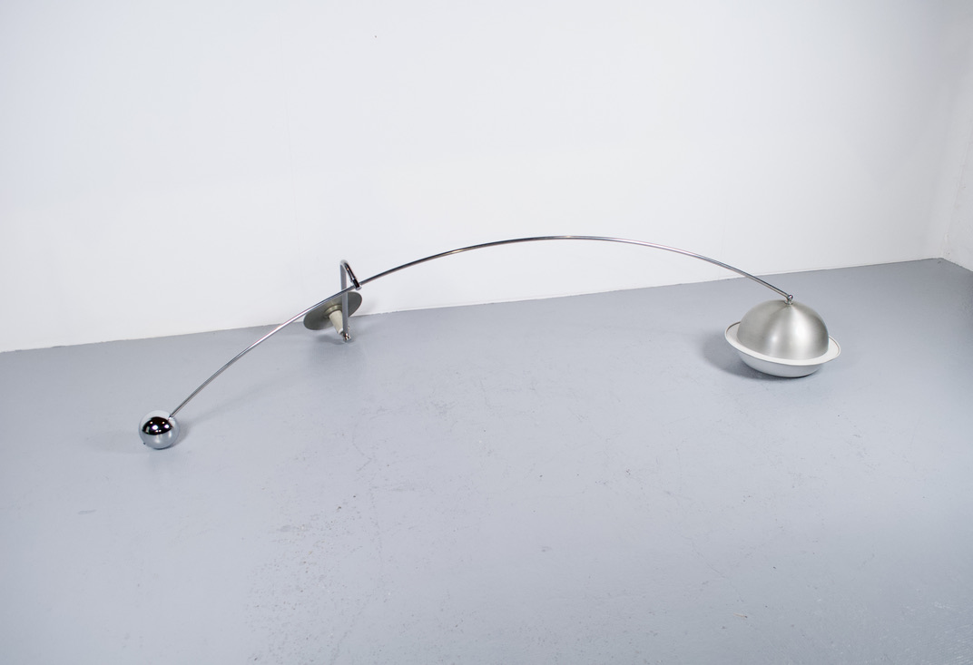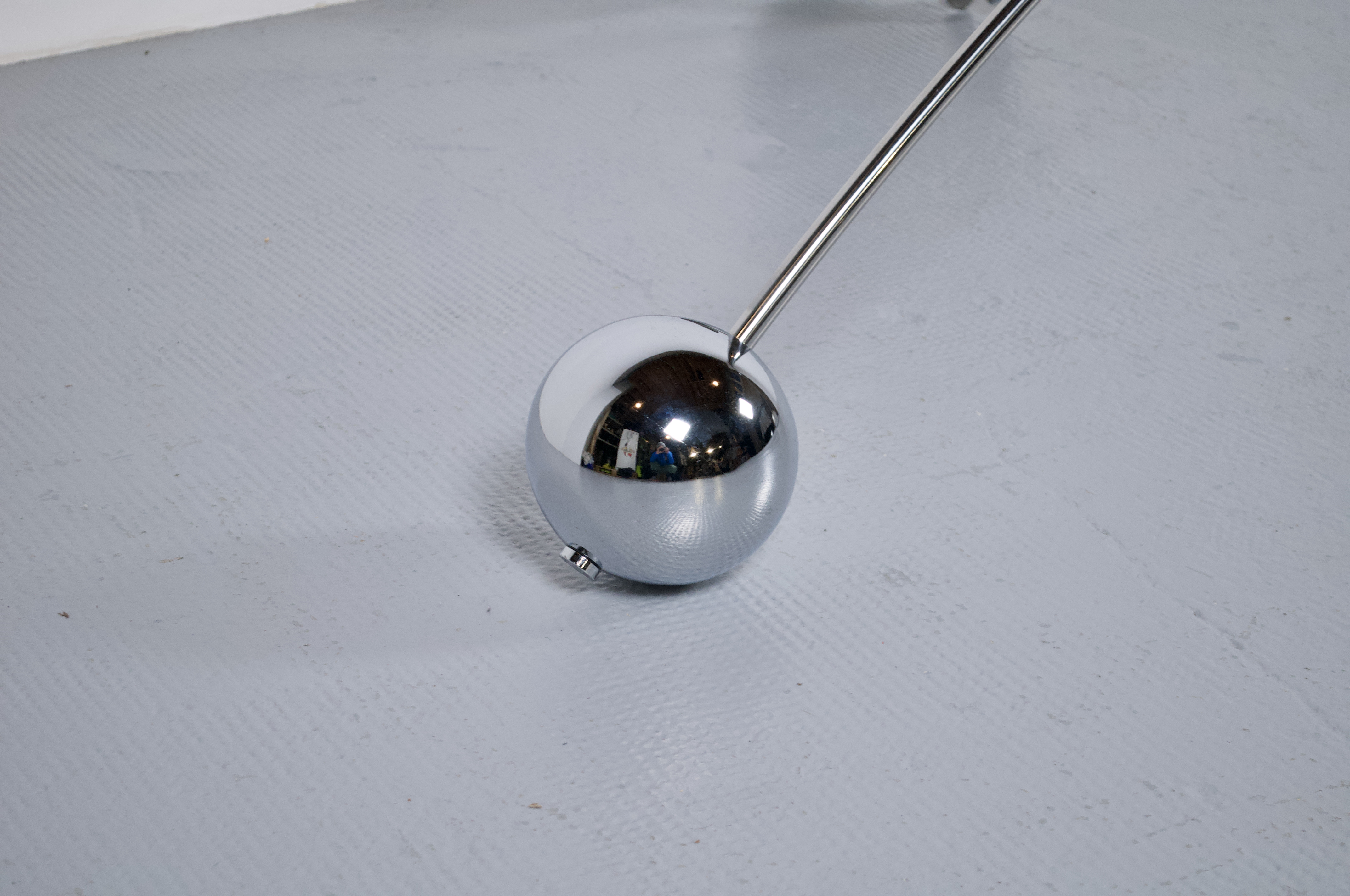 Structure en acier chromé, acier brossé et perspex pour le globe.