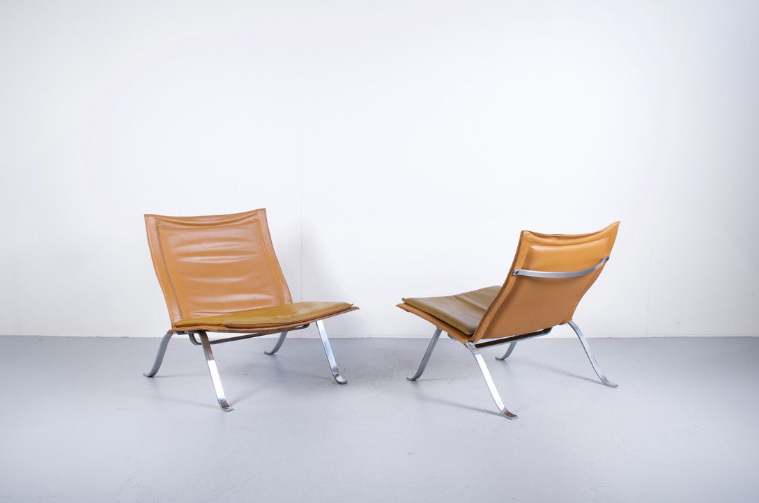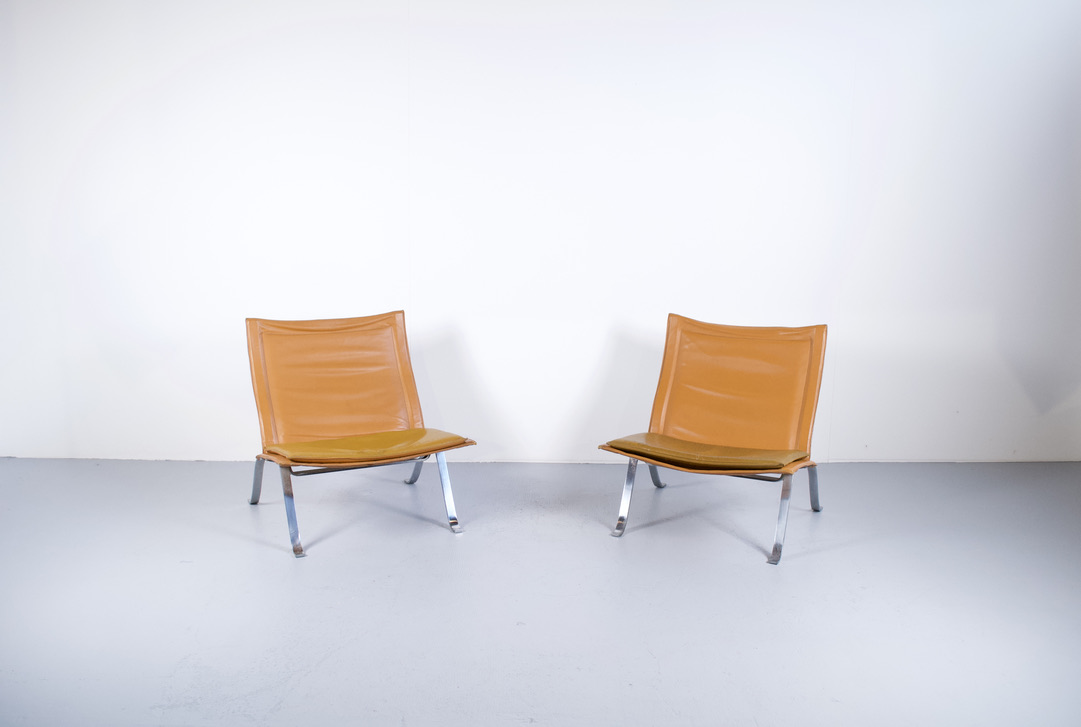 Imposante paire de fauteuils années 60', dans le gôut de Poul Kjaerholm.