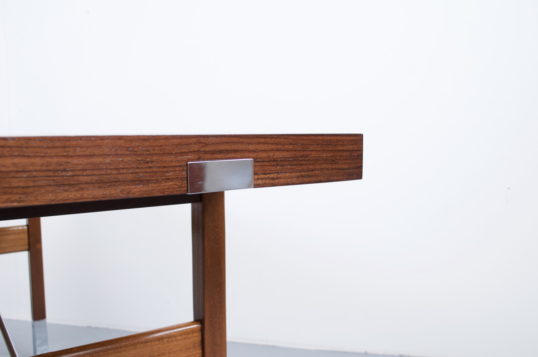 Plateau rectangulaire et piètement en palissandre des indes.